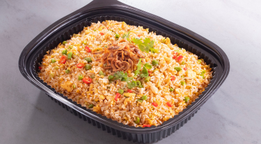 Wok fried with crab bits, egg, mixed vegetables and chicken meat loaf. Fried rice is the quintessential of comfort food.